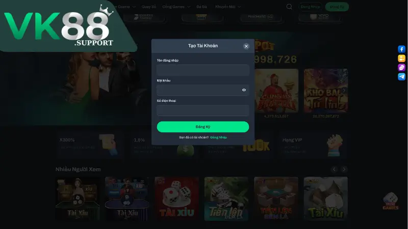 Quá trình tạo tài khoản tại VK88 diễn ra vô cùng thuận tiện với giao diện thân thiện.
